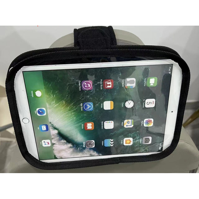 Vhodný na tablet, telefon, iPad. Upevňuje se na opěrku hlavy sedadla řidiče nebo spolujezdce (pro posměrné autosedačky) nebo na opěrky zadních sedadel (pro protisměrné autosedačky).